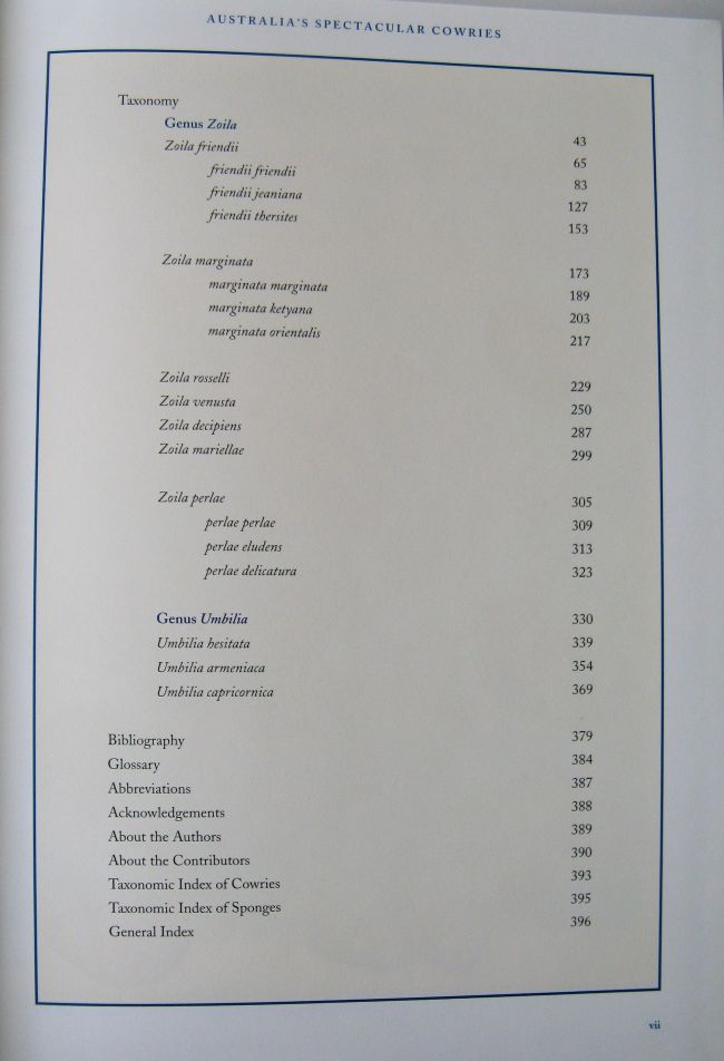 - Pokrývá australské oblasti Zoila a Umbilia mnoha krásnými barevnými obrázky a texty a poprvé ukazuje desítky lastur v jejich přirozeném prostředí, s důrazem také na hostitelské houby a celkové prostředí.