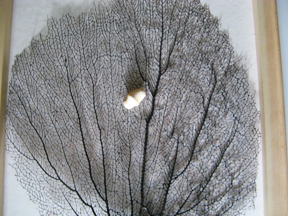 Gorgonia flabellum Linnaeus, 1758 (Gorgonie vějířovitá) v dřevěném rámečku