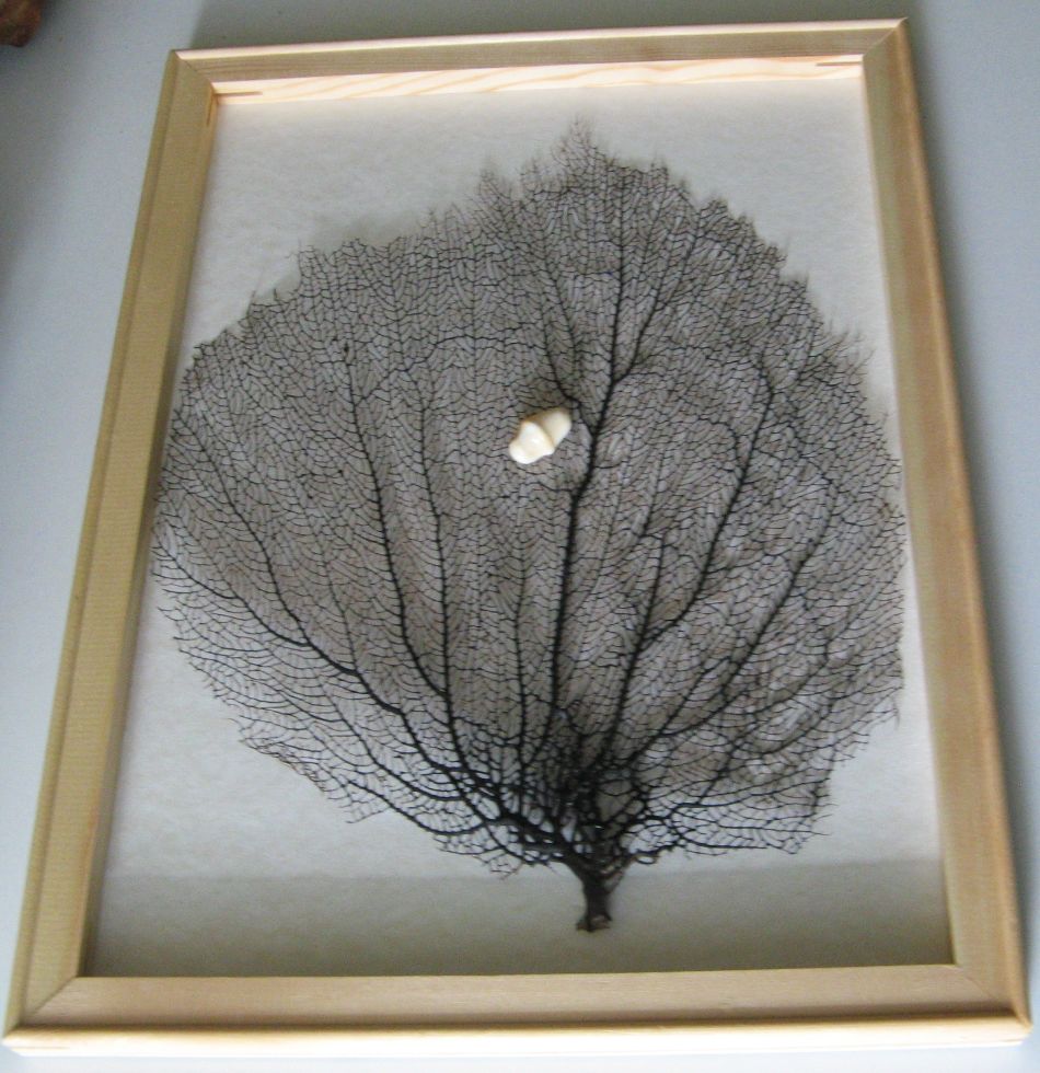- Gorgonia flabellum (Gorgonie vějířovitá) v dřevěném rámečku z borovicového dřeva.