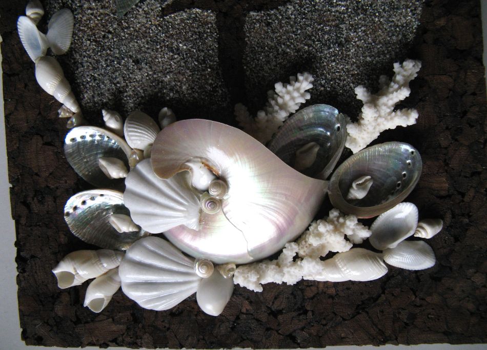 - She developed her own unique technique of applied art “sand-shell mosaic” that preserves the pristine colors of natural materials.