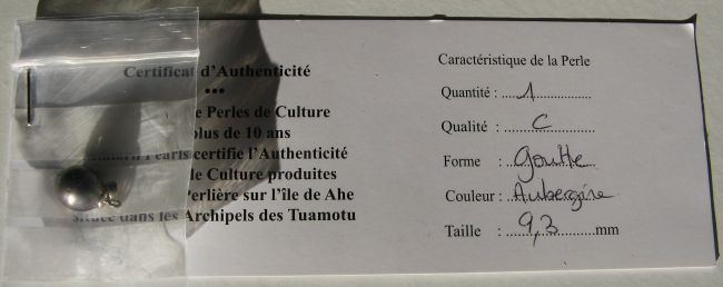 - Tahiti black pearl with certificate/Tahitská černá perla s certifikátem