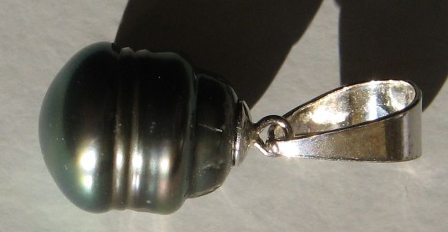 Tahitská černá perla s certifikátemVelikost: 9,8 mmTvar: barokníBarva: greyPovrch: nepravidelnýLesk: vysoký leskKvalita: C