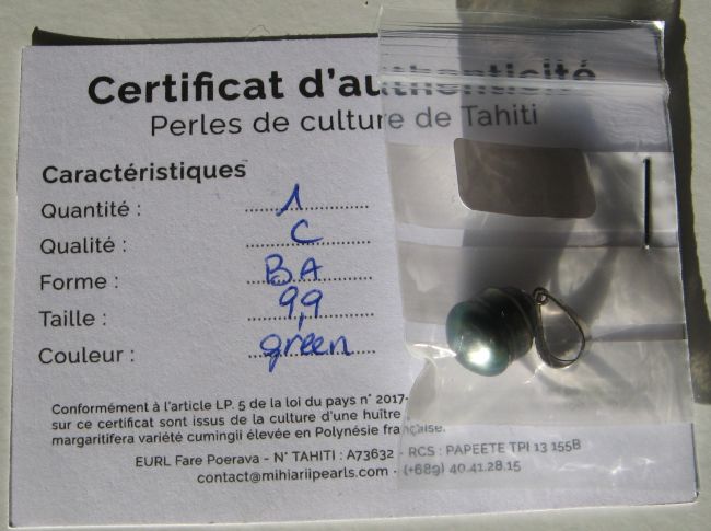 - Tahitská černá perla s certifikátem